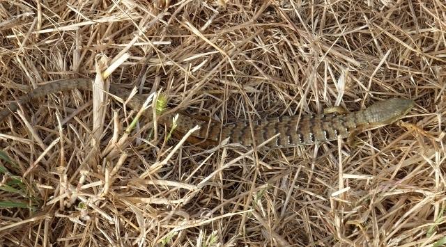 With its big tail, it could easily be mistaken for a snake, but it has legs.