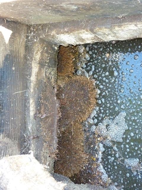 What a septic tank looks like when the inlet pipe is not sealed to the concrete tank, and becomes completely blocked by tree roots. The culprit here is salix matsudana, the contorted willow renowned for fouling sewer lines with its extensive root system (growing, of course, right next to the septic tank).